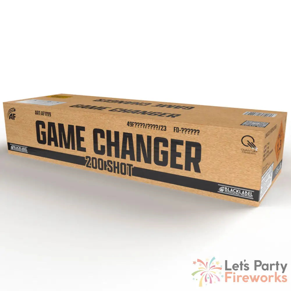 Introducing the ultimate event experience: Game Changer! Prepare to be blown away by this incredible fireworks display that will leave your neighbours green with envy. It's like having a complete fireworks show in one convenient box. With just one fuse, this simplifies the process without compromising on the grandeur of a professional fireworks display. It's the ultimate game-changer, offering an unmatched level of excitement and spectacle in a single, user-friendly package. Game Changer is our most impressive compound yet. It's bigger, heavier, and louder than anything we've ever offered before. The name says it all - this product truly revolutionizes consumer fireworks. Featuring a combination of four 50-shot, full flash, 30mm straight, Z, and fan firing cakes, Game Changer delivers a spectacle that rivals even professional displays. The vibrant colours, diverse firing patterns, and full flash bursts will leave you in awe. The pace is incredible, and the duration of nearly 3 minutes ensures a memorable experience that will have everyone talking. With Game Changer, you'll enjoy an array of different effects and vibrant colours that will make you stand out from the crowd. It's a must-have for anyone looking to create an unforgettable event. Don't settle for ordinary fireworks displays when you can have the extraordinary. This compound firework is the ticket to transforming your event into something truly remarkable. So don't miss out on this opportunity to be the talk of the town. Get your hands on Game Changer today and prepare for an unparalleled fireworks experience that will leave everyone speechless. Looking for more? Check out
