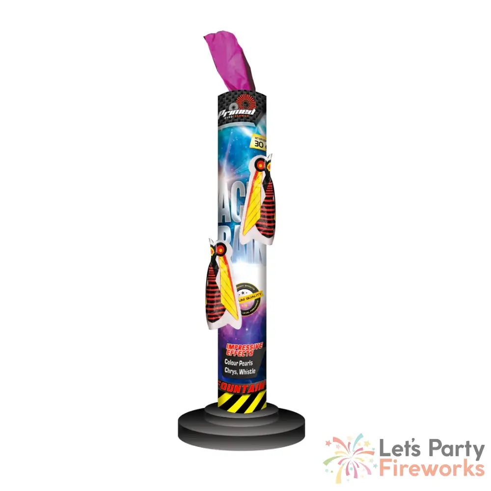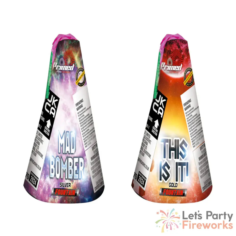 Content: 1 x Big Wheel, 9 x fountains, This is it, Mad bomber, Spring Blossom, Mystery Stars, Turbo Fire, Acid Rain(2), Dragon Breath, Mystery Stars, Magma Mine(2), 4 x Sky Raider Rockets, 4 x Moonshot rockets, 6 X Cakes. Russian Roulette, In the Money, Aces High, Late Night Bingo, Cash Play, Snake Eyes.